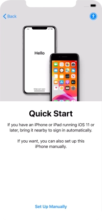 Follow the instructions on the screen to transfer content from another device running iOS 11 or later or press Set Up Manually.