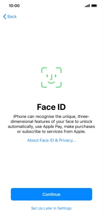 Follow the instructions on the screen to turn on use of Face ID or press Set Up Later in Settings.