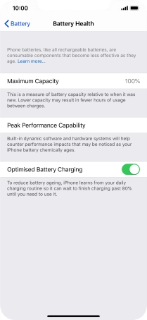 Press the indicator next to "Optimised Battery Charging" to turn the function on or off.