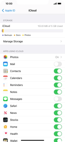 Press the indicators next to the required data types to turn synchronisation of each data type on or off.
