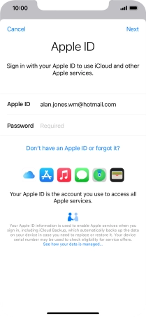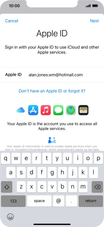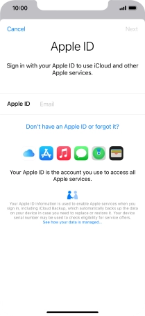 If you don t have an Apple ID, press Don't have an Apple ID or forgot it? and follow the instructions on the screen to create an Apple ID.