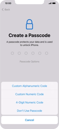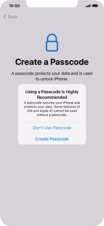 Follow the instructions on the screen to turn on use of phone lock code or press Don't Use Passcode.