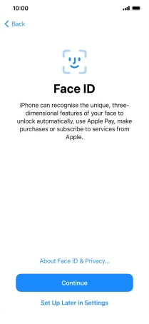 Follow the instructions on the screen to turn on use of Face ID or press Set Up Later in Settings.
