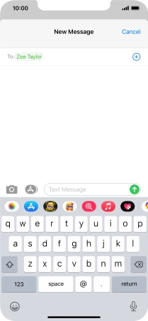 Press the text input field and write the text for your text message.