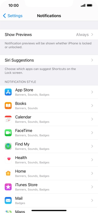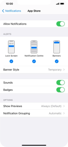 Press the indicator next to "Allow Notifications" to turn notifications for the selected application on or off.