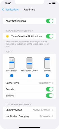 Press the indicator next to "Time-Sensitive Notifications" to turn the function on or off.
