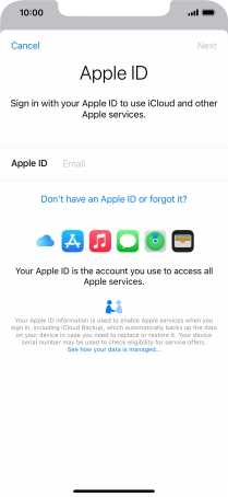 If you don t have an Apple ID, press Don't have an Apple ID or forgot it? and follow the instructions on the screen to create an Apple ID.