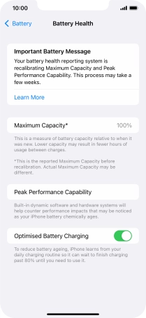 Press the indicator next to "Optimised Battery Charging" to turn the function on or off.