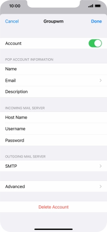Press the name of the email account you've just set up.