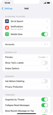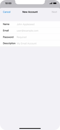 Press the required email account and follow the instructions on the screen to select settings for the specific account.