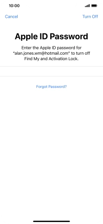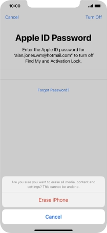 Key in the password for your Apple ID and press Erase iPhone. Wait a moment while the factory default settings are restored. Follow the instructions on the screen to set up your phone and prepare it for use.