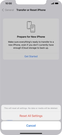 Press Reset All Settings. Wait a moment while the factory default settings are restored. Follow the instructions on the screen to set up your phone and prepare it for use.