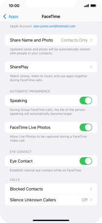 Press the required setting below "YOU CAN BE REACHED BY FACETIME AT".