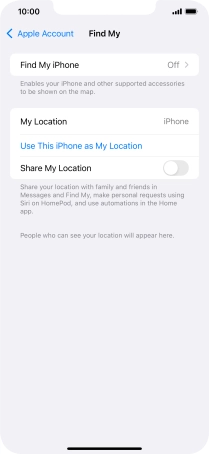 Select settings for Find My iPhone on your Apple iPhone 11 Pro Max iOS 18