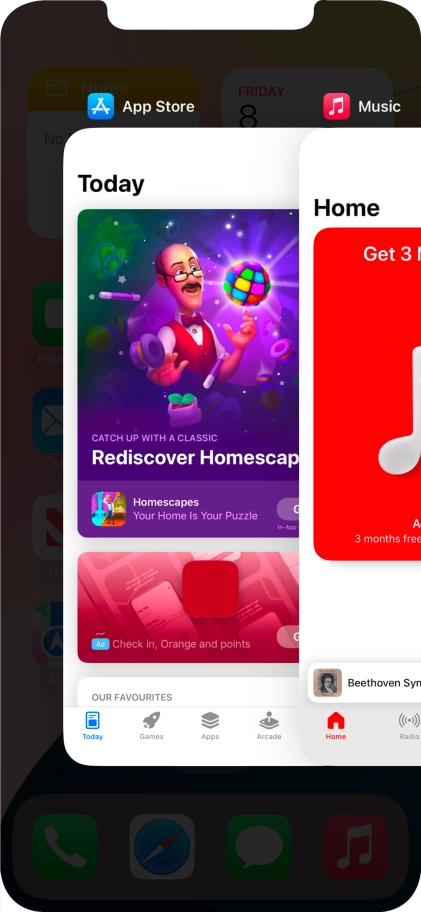 Slide your finger slowly upwards starting from the bottom of the screen until the list of running applications is displayed.