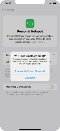 If Wi-Fi is turned on, press Wi-Fi and USB Only.