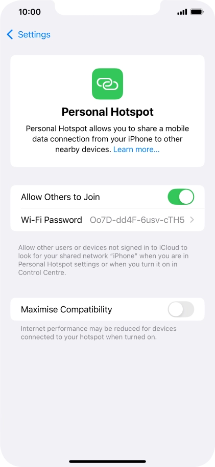 Find the list of available Wi-Fi networks and select the personal hotspot you've just set up.