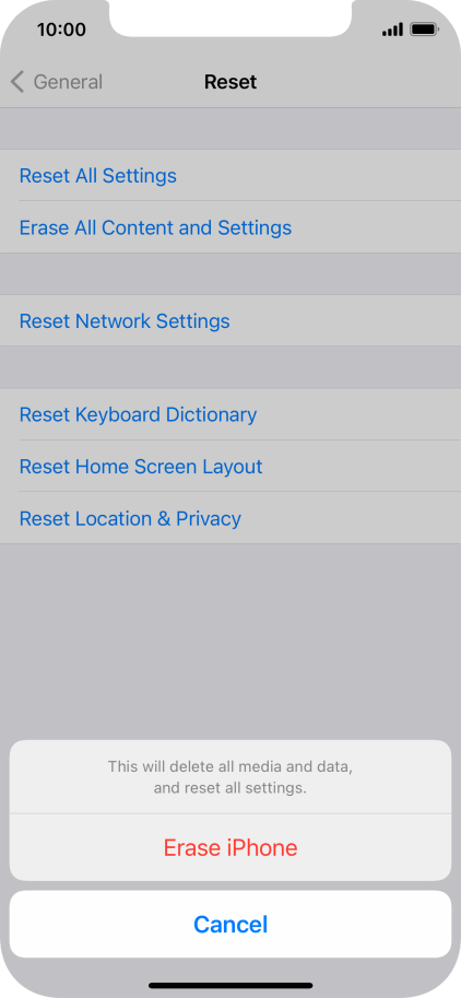 Key in the password for your Apple ID and press Erase. Wait a moment while the factory default settings are restored. Follow the instructions on the screen to set up your phone and prepare it for use.