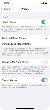 Press the indicator next to "Upload to My Photo Stream" to turn the function on or off.