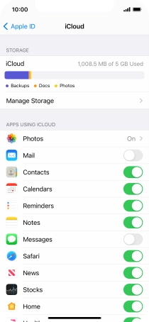 Press the indicator next to "iCloud Drive" to turn file synchronisation on or off.