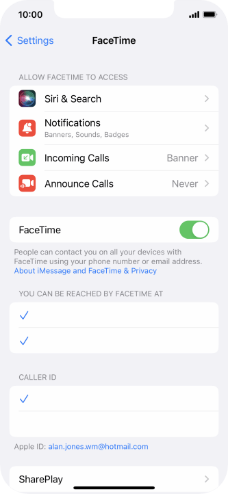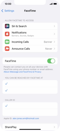 Press the required setting below "YOU CAN BE REACHED BY FACETIME AT".