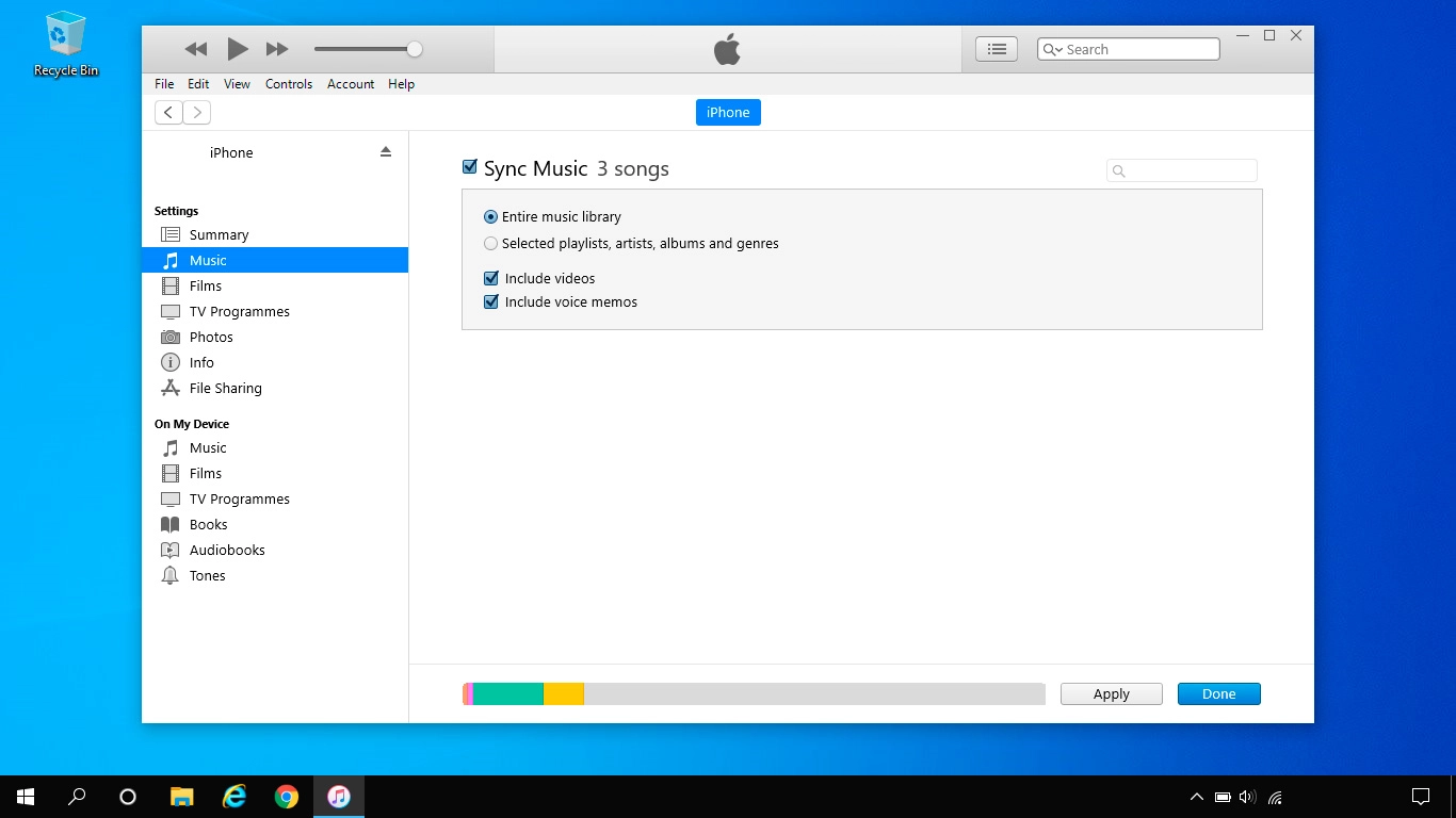 Depending on your settings in iTunes, the transfer may start automatically. To manually start the transfer, click the iPhone icon.