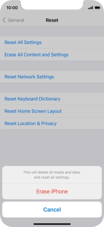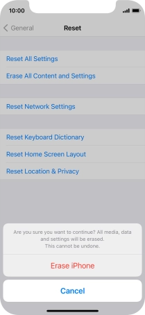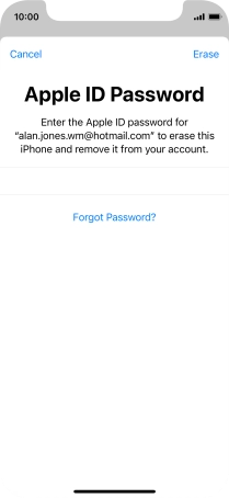 Key in the password for your Apple ID and press Erase. Wait a moment while the factory default settings are restored. Follow the instructions on the screen to set up your phone and prepare it for use.