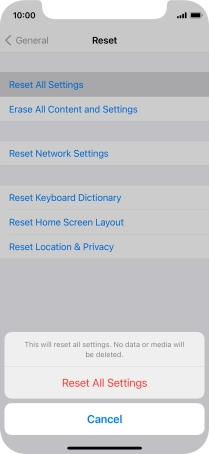 Press Reset All Settings. Wait a moment while the factory default settings are restored. Follow the instructions on the screen to set up your phone and prepare it for use.