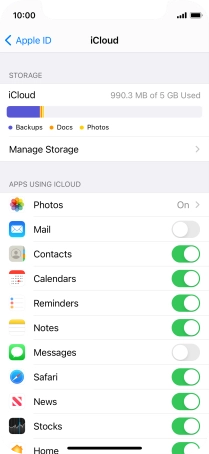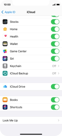 Press the indicator next to "iCloud Drive" to turn file synchronisation on or off.