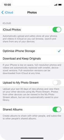 Press the indicator next to "Upload to My Photo Stream" to turn the function on or off.