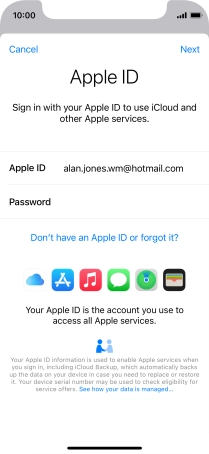 If you don t have an Apple ID, press Don't have an Apple ID or forgot it? and follow the instructions on the screen to create an Apple ID.