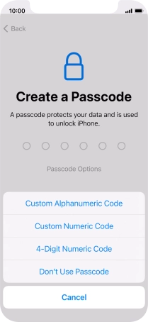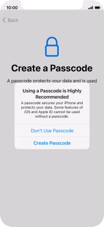 Follow the instructions on the screen to turn on use of phone lock code or press Don't Use Passcode.