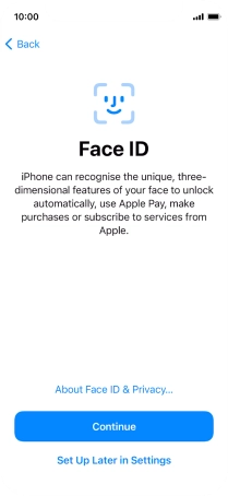 Follow the instructions on the screen to turn on use of Face ID or press Set Up Later in Settings.