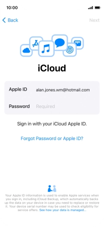 Press the field next to "Apple ID" and key in the username for your Apple ID.