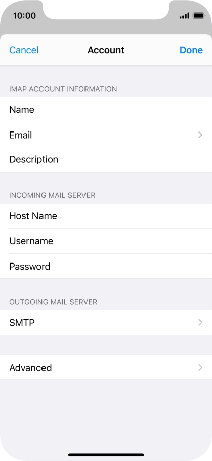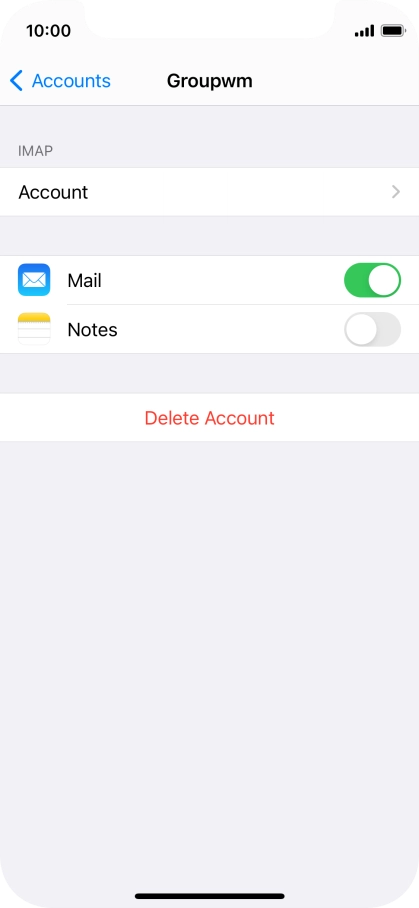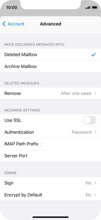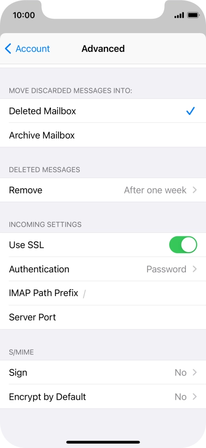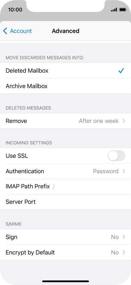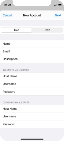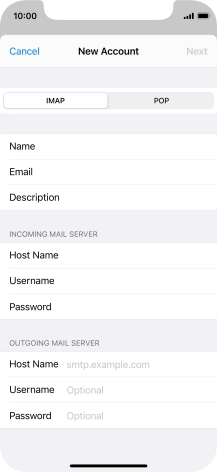Press the required email account and follow the instructions on the screen to select settings for the specific account.