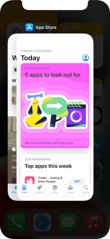 Slide your finger slowly upwards starting from the bottom of the screen until the list of running applications is displayed.