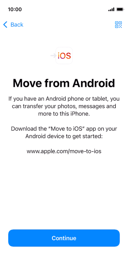 Follow the instructions on the screen and in the "Move to iOS" app to transfer the content from the Android phone to your phone and set up your phone and prepare it for use.