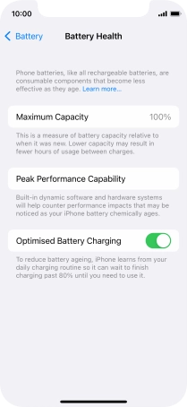 Press the indicator next to "Optimised Battery Charging" to turn the function on or off.