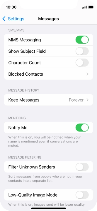 Press the indicator next to "MMS Messaging" to turn on the function.