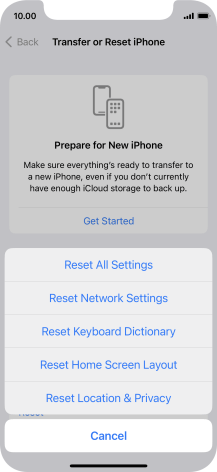 Press Reset All Settings. Wait a moment while the factory default settings are restored. Follow the instructions on the screen to set up your phone and prepare it for use.