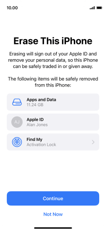 Key in the password for your Apple ID and press Erase iPhone. Wait a moment while the factory default settings are restored. Follow the instructions on the screen to set up your phone and prepare it for use.