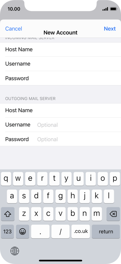 If this screen is displayed, you email account has been recognised and set up automatically. Follow the instructions on the screen to key in more information and finish setting up your phone.