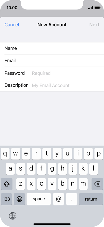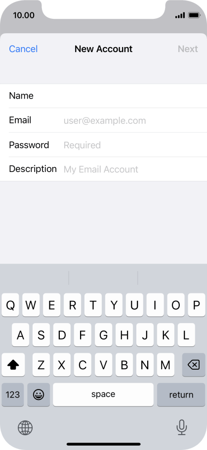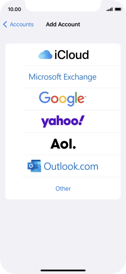 Press the required email account and follow the instructions on the screen to select settings for the specific account.