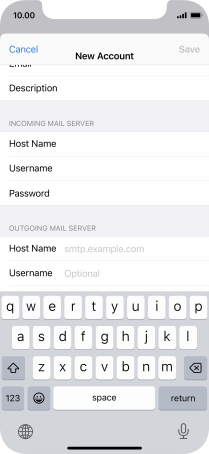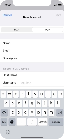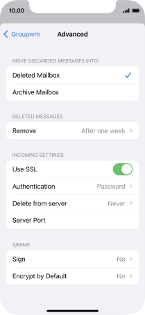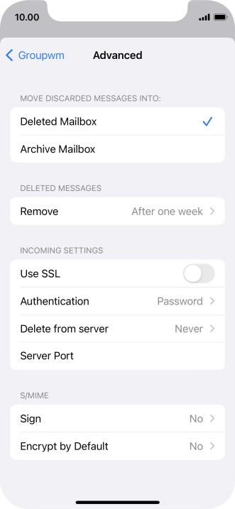 Press the required email account and follow the instructions on the screen to select settings for the specific account.