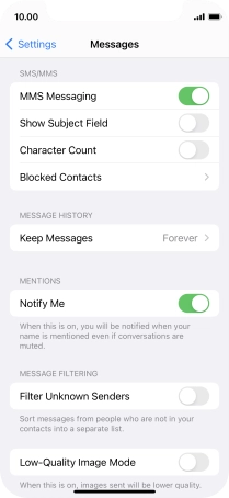 Press the indicator next to "MMS Messaging" to turn on the function.