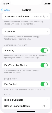Press the indicator next to "FaceTime" to turn the function on or off.