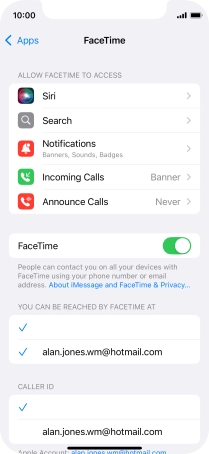 Press the required setting below "YOU CAN BE REACHED BY FACETIME AT".
