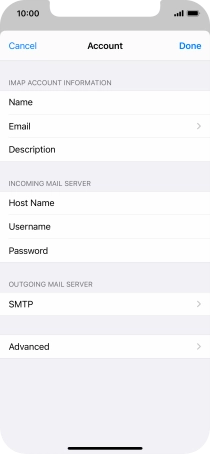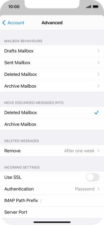 Press the required email account and follow the instructions on the screen to select settings for the specific account.