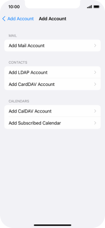 Press the required email account and follow the instructions on the screen to select settings for the specific account.