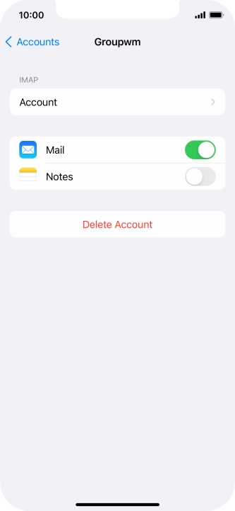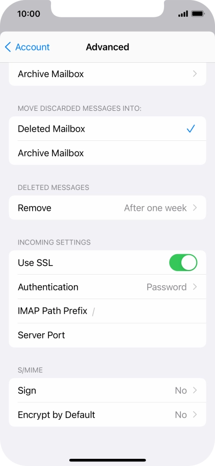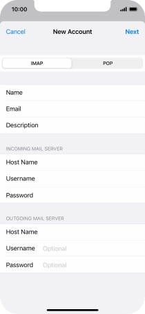 Press the required email account and follow the instructions on the screen to select settings for the specific account.